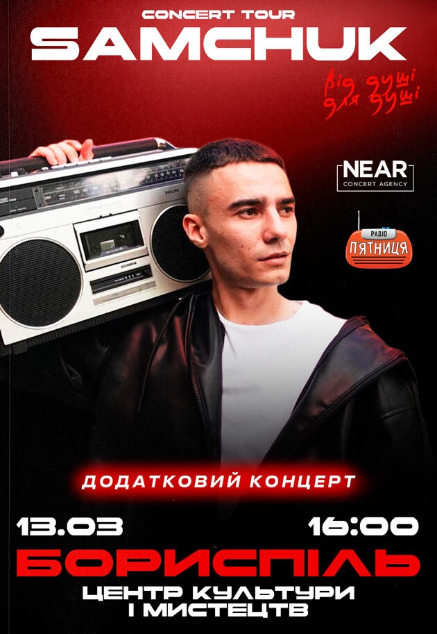Samchuk состоится 13 марта 2026, 16:00, пятница в Центр культуры и искусств. С помощью сервиса internet-bilet.ua, Вы сможете с легкостью забронировать, заказать и купить билеты на интересующий Вас концерт, спектакль, оперу, балет, мастер-классы, спортивные и детские мероприятия, оплатив их самым удобным для Вас способом: через интернет банковской картой VISA/MasterCard, наличными или курьером, если сделаете заказ билета c доставкой.
